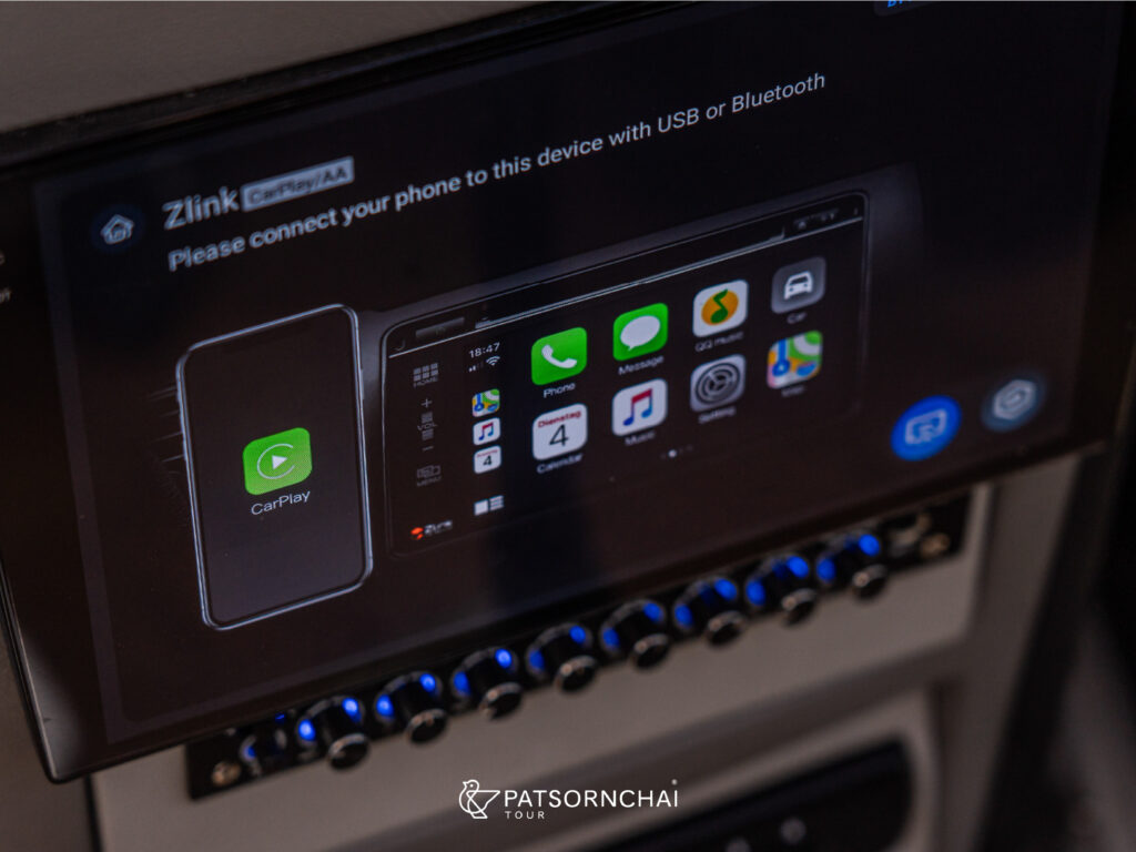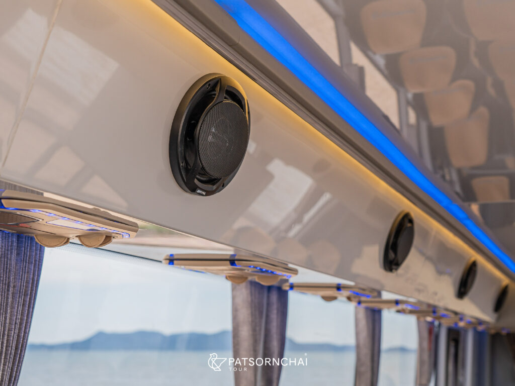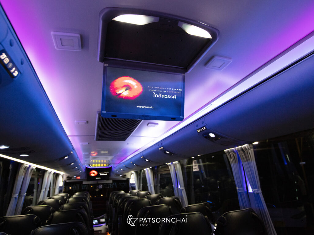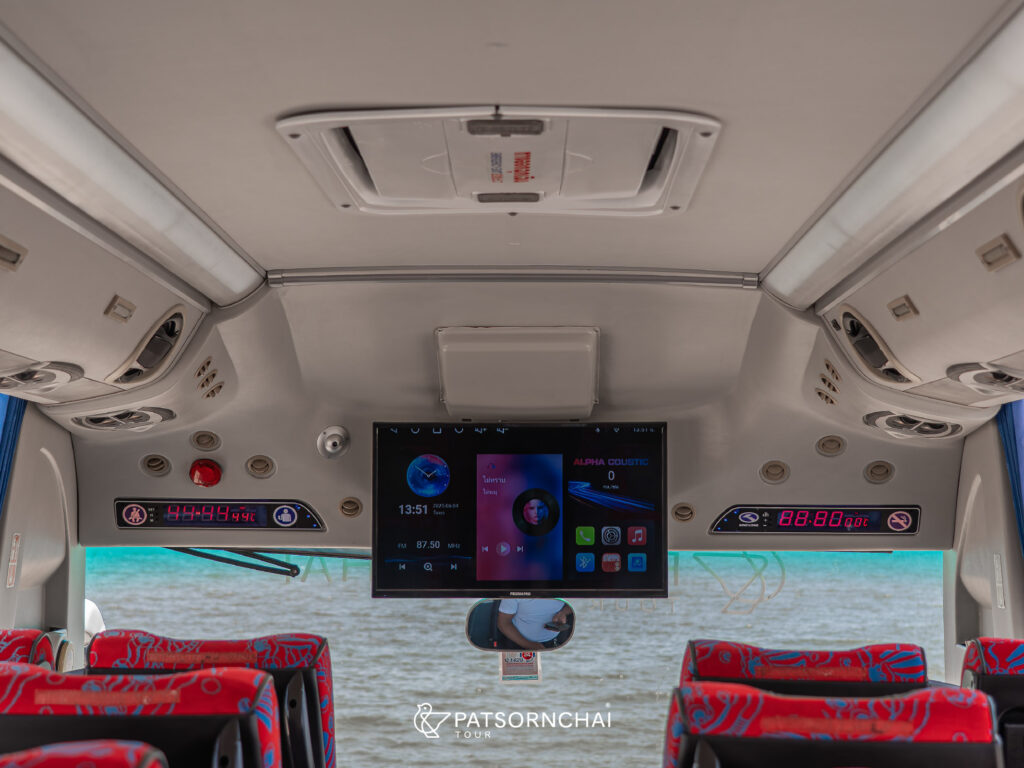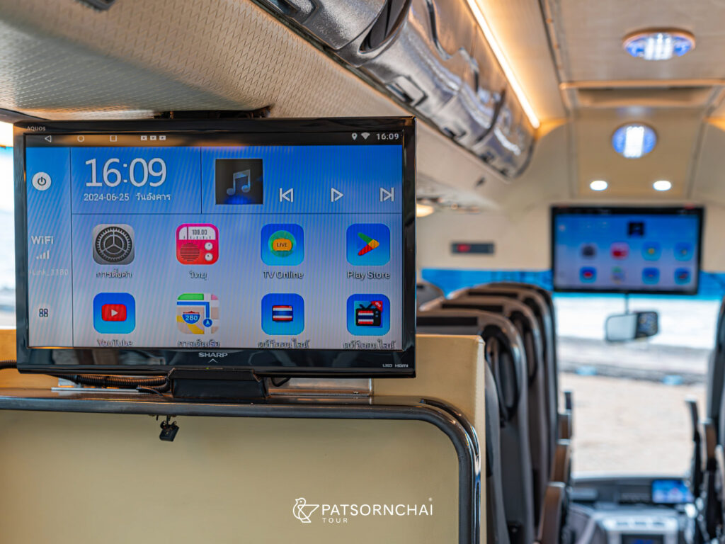 • มีจอทีวี 2 จุดคือหน้ารถและส่วนกลางรถ