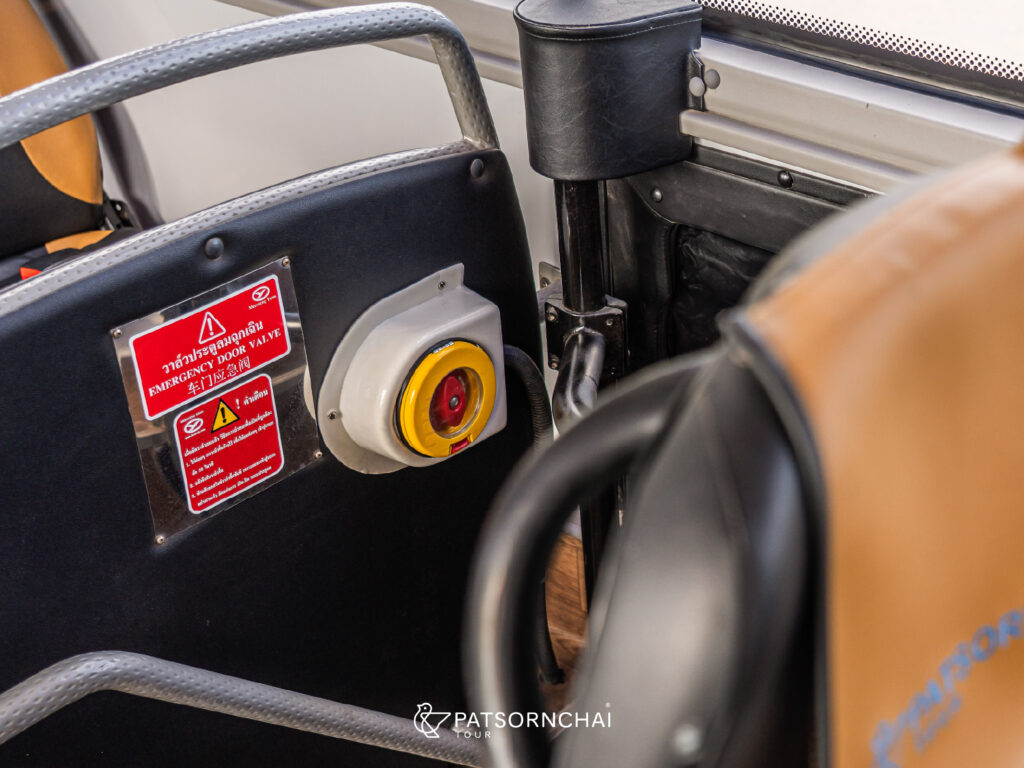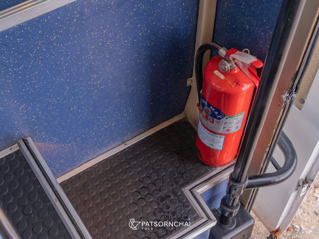 • มีประตูทางออกฉุกเฉิน มีถังดับเพลิง ค้อนทุบกระจกในกรณีเกิดเหตุ
