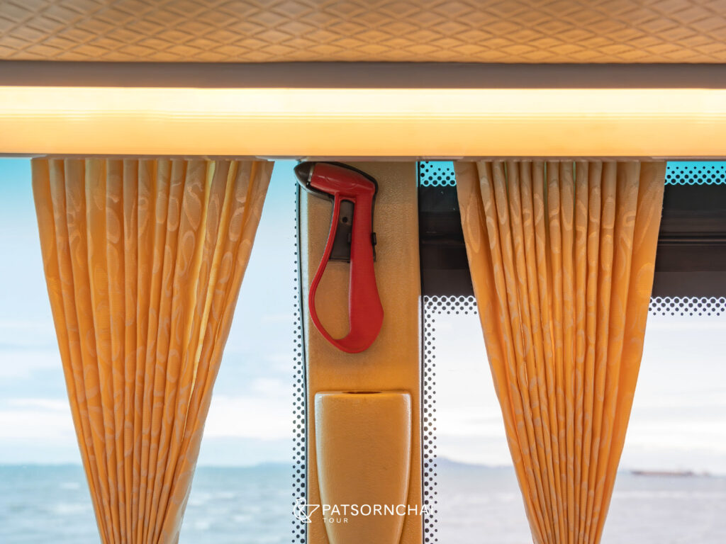 • มีอุปกรณ์รองรับสำหรับเหตุฉุกเฉินอย่าง ถึงดับเพลิง ค้อนทุกกระจก