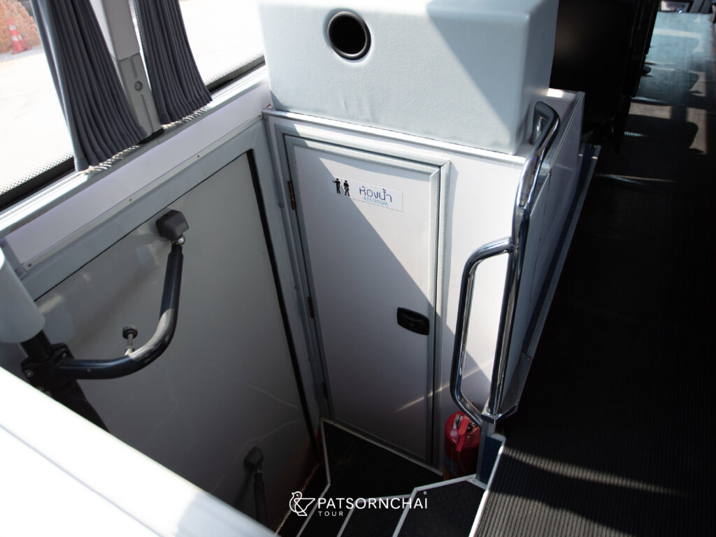 • มีห้องน้ำระบบแรงดันลมอยู่กลางตัวรถ